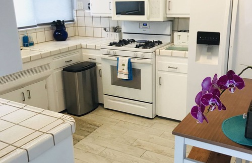 Modernized Beach Guest House with Fully Equipped Kitchen, Living Room, 2 Bedrooms. Living Room has Futon that sleeps 2, Master has King Bed, Second Bedroom has 2 Twin Beds (can convert to King) Bathroom has tub/shower combination and plentiful storage. Courtyard is enclosed and catches Bay and Ocean breezes. Free Wireless Internet and Cable TV. Close to it all - beaches, boating, dining, kayaking, paddle boarding, fishing, entertainment, surfing basketball and kids play areas.