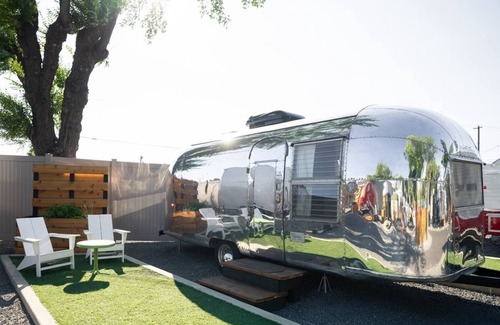 The shiniest of the bunch, The Indio takes after it’s namesake, Indio, California, home of the Coachella Valley Music and Arts Festival. The 1963 Airstream Flying Cloud boasts the original Airstream shell, with breathtaking attention-to-detail updates throughout the interior. Wake up to desert and palm tree vibes with a side of modern macrame hygge that will make your stay at The Camp a relaxing one.