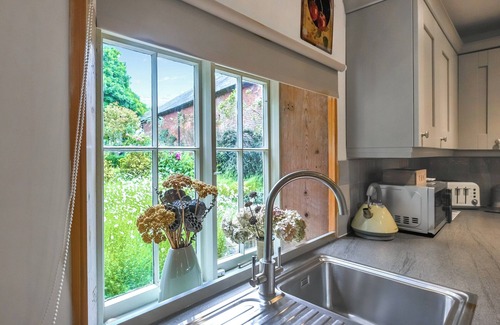 Bedroom: Double (4ft 6in) Bed Ensuite: Cubicle Shower, Heated Towel Rail, Toilet. Gas central heating, electricity, bed linen, towels and Wi-Fi included. Welcome pack. Enclosed grounds with courtyard, patio and garden furniture. Bike store. Private parking for 1 car. No smoking. Please note: No babies.. Welcome to Home Farm Barn in Pontesbury, just 8 miles from the historic market town of Shrewsbury, perfect for couples seeking a peaceful escape. The cottage sleeps up to two guests and features a light and airy open-plan living area. Combining the living room, dining room, and kitchen into one inviting space, it is decorated to a high standard with calming Farrow and Ball colours, providing a serene and stylish atmosphere. Upstairs, the cottage boasts a spacious double bedroom with an en-suite shower room and lovely views of the garden, enhancing the sense of tranquillity. The garden itself is a highlight, offering several seating areas for relaxation, cycle storage for those who wish to explore on two wheels, a patio for al fresco dining, and a wild garden that attracts local wildlife.