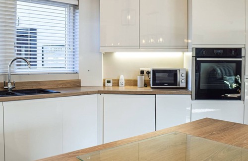 Bathroom: With walk-in shower, toilet and heated towel rail.. If you love the seaside, you’ll love this contemporary apartment in the ever-popular Ritson Wharf development. Refurbished throughout and new to the market for 2022, Sundown offers the latest in sleek interior design and provides a stylish and relaxing base for your next Cumbrian getaway! Perfect for couples, this stunning ground floor apartment offers a good-sized double bedroom and a beautiful bathroom with large walk-in rainforest shower. The open-plan living area has a funky breakfast bar and a huge flat screen smart TV with all the latest apps. The kitchen is modern, with an excellent range of appliances. You can enjoy views to the harbour from the living room, the apartment is all on one level and you can access the communal garden to the rear with lawn and seating area which also overlooks the harbour.