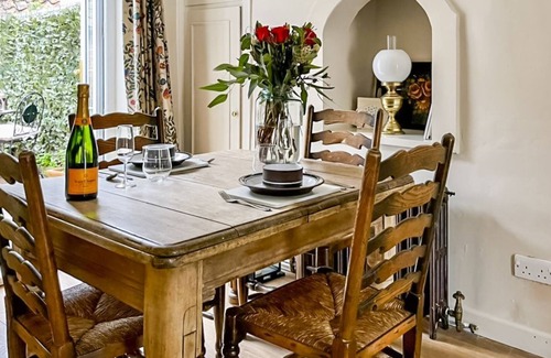 Enjoying a cosy interior with traditional cottage features, including a warming wood burner and laminate floors, the open plan living/dining room is truly delightful. With views from the font across the babbling brook and with French doors opening out onto a small enclosed courtyard, this room is flooded with natural light. A large sofa sits perfectly in front of the wood burning stove whilst the dining table offers plenty of seating for two. The galley style kitchen may be small but is perfectly formed offering a host of appliances including a gas hob, electric oven, dishwasher and washing machine. The ground floor accommodation is completed by a house bathroom offering a bath with shower over. The cottage stairs take you to the first floor where you will find a large kingsize bedroom with lovely village views. This pretty cottage offers a small private courtyard with additional seating. Here you can enjoy an early morning coffee whilst planning the day ahead or enjoy an al fresco evening meal.