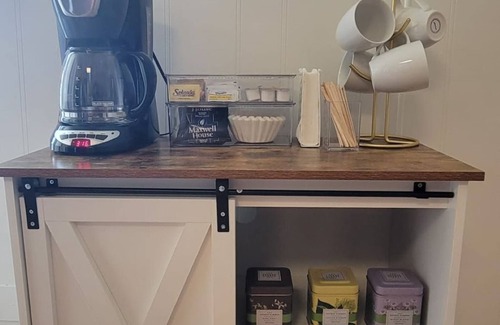 To start your stay off right, we offer a complimentary bottle of water for guests. The well-equipped kitchen has all the essentials for cooking and dining, while the coffee station adds a delightful touch to your morning routine. Whether you're here for a short getaway or an extended stay, this cozy apartment is your perfect home away from home.