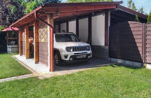 Arrive in Osolin and relax. This practical vacation home promises you simple comfort and invites you to enjoy the peace and quiet together with your loved ones. Enjoy the pleasant wooden furnishings and use the house as an optimal starting point for your activities in the area. In the evenings you can gather on the terrace and end the day with snacks and games.