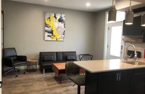 Surround yourself with style in this standout space. Newly renovated, modern suite with everything you need to relax and enjoy! Fully furnished, well equipped, including full kitchen, bath, laundry, wifi, tv, electric fireplace, central air and 1 parking space. 1 private bedroom with a queen bed, plus a small sofa bed in the living area. Have an electric vehicle? No need to worry about where to charge. There’s an EV charger onsite, free of charge!