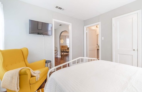 Relax with the whole family at our peaceful home. Charming 2 bedroom cottage in a quiet neighborhood with large fenced yard for your furry family members to roam. Minutes away from downtown Carrollton, which has lots of restaurants and shopping. Also easy access to major highways and less than 20 minutes from downtown Dallas and DFW airport. Pet friendly (fee applies)