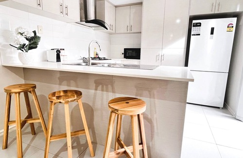 A private dream home in the BEST suburb! A pristine oasis —our 3BR, 2BA gem has double lock-up garage & private courtyard. New build, gleaming floors, modern full kitchen - oven, fridge, dishwasher, microwave, coffee machine, 3 serene bedrms +2 bathrms. Enjoy the lush cosy space w/ beautiful living & dining area, large Smart TV & FREE WI-FI. Unpack & Unwind. Conveniently located in a quiet neighborhood, our home offers the perfect blend of comfort and convenience. Come Home to Stay!