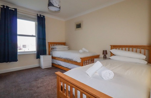 1 Spinnakers is a splendid ground-floor apartment resting in Newquay, Cornwall. Hosting two bedrooms, including a super-king-size with en-suite bathroom and a twin with pull out bed, along with a bathroom, this property can sleep up to four guests. There is also an open-plan living space with kitchen, dining area and sitting area. Outside there is off-road parking for one car and communal gardens with lawn. 1 Spinnakers is a fantastic coastal getaway for a refreshing break with your loved ones. Please note: No stag/hen/single sex groups or groups under 25.