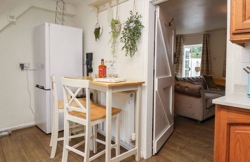 1 Ty Capel has a kitchen/diner, a sitting room with woodburning stove, a double bedroom, and a bathroom. Appliances consist of an electric oven and hob, microwave, fridge/freezer, washer/dryer and Smart TV. Outside there is an enclosed front garden with lawn, patio and furniture, an enclosed rear garden with patio, furniture and an outbuilding for storage, and off-road parking for one car. Within 2.2 miles, you'll find a shop and in 2.4 miles, a pub and please note that two well-behaved dogs are welcome, but sorry, no smoking. WiFi, fuel, power, bed linen and towels are all included in the price. Enjoy Denbighshire's countryside at 1 Ty Capel. Note: Dogs must be kept on lead as the fence is quite low. Note: This is an adult-only property. Note: Low head height on the stairs, which are also steep; please take care. Note: Steps to the exterior.