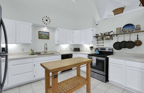 Choose from one of the four bedrooms: Downstairs, Bedroom 1 hosts a king bed, while Bedroom 2 features a twin and a twin chair sleeper. Upstairs, find another bedroom with a king bed and Bedroom two with two twin beds and a twin chair sleeper. It's a space designed to cater to your family or group's every need.