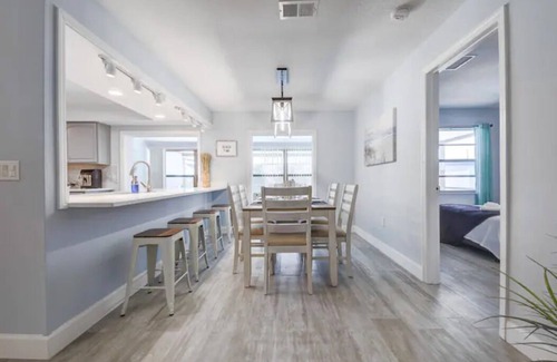 This beautiful Melbourne villa features a newly upgraded kitchen, porcelain tile floor, and high-quality furniture. Have family fun in the sparkling pool with spa, game tables, and BBQ. Treat yourself a good night sleep with an adjustable king bed with vibration massage! Home is equipped with cooking tools, air fryer, blender, coffee machine and much more. Kids friendly with highchair, pack and play. Beach chairs and beach toys are also available for use free of charge. Welcome to Melbourne.
