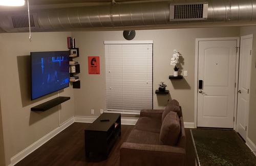 You can be downtown, north or south Austin in 10 minutes. High speed internet. New 65" mounted 4k Smart TV. Full equipped kitchen with dishwasher. Comes with everything you need for short or long stays.