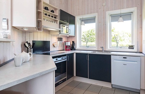 Holiday cottage with whirlpool and sauna. From the house you can observe the ocean and the beautiful natural landscape that characterises the area. The design has put great emphasis on keeping the cottage bright and the large windows help to that effect. There is a large open/covered terrace with garden furniture and 60 m² open terrace around the house. The garden is enclosed by a fence which means the pets can run freely. There are two bathrooms, one with a 2-person whirlpool, sauna and shower. Combined living/dining room furnished with furniture in the best Danish quality. The living room is also equipped with flat screen TV, DVD player, radio with CD player, a digital TV system and PlayStation. The kitchen is with ceramic hob, oven, cooker hood, microwave and 2 freezers. 2 extra freezers for the freshly caught fish.A refundable deposit might be charged closer to your check-in date. Thesecuritydepositensuresasmoothstayandcoversany additionalservicesorconsumptioncharges.Thisdepositcoversutilitiesconsumedduringyourstay andanyadditionalservicesthatmaybetaken.Thefinalamountwillbeadjustedbasedonactualmeter readings,actualusageofextraservices,andanyremaining balancewillberefundedwithin21daysaftercheckout.Thisdepositsimplyactsasaprepaymentforchargesthat youwouldanywayspayfor,ensuringaseamlessstayand check-outexperience.