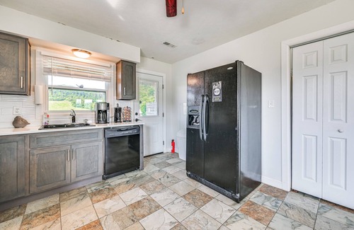 Embrace the colors of fall in Kentucky's Lake Cumberland region at this 3-bedroom, 1-bath farmhouse in Somerset. Nestled among rolling hills and mountain views, this vacation rental invites crisp mornings with coffee on the porch, relaxing afternoons in the hot tub, and evenings around the wood-burning fire pit. After hiking, apple picking, or lake adventures, relax by the cozy fireplace.