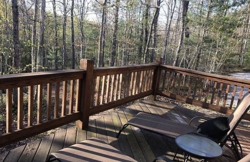 The firepit in the front yard is framed by log benches. Grill over the open fire on the grilling station with the provided tools or use the propane grill on the wrap around porch. Enjoy your meal on the table under the canopy of trees or in the screened in porch. Once your belly is full, kick back in one of the many rocking chairs, cushioned chairs , couch, or hammock located on the front covered porch, the screened in porch and the open deck out back. While the adults are relaxing, let the kids burn off energy in the sandbox or tossing horse shoes.