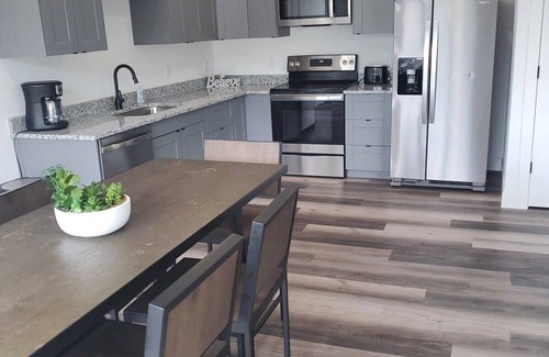 Kitchen: Our spacious upscale kitchen is equipped with new stainless steel appliances, a gas stove with hood and both drip and Keurig coffee makers, tea kettle, and French press. Included are starter K Cups, tea, hot cocoa, decaf, ground coffee, filters, and tea bags. The large dining area flows from the kitchen to share in the expansive main channel views.
