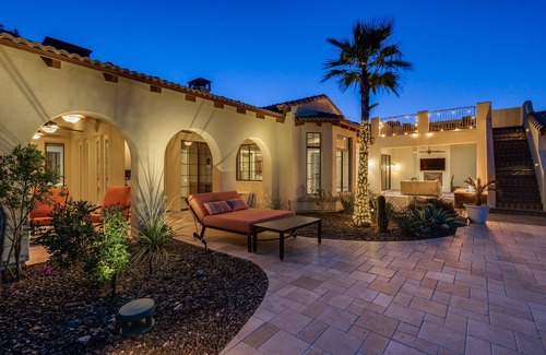 It doesn't get better than this! 4000 sqft. Custom home and an additional 1000 sqft of patios and decks on a 3/4 acre lot. Negative edge pool, indoor and outdoor fireplaces, Roof Top deck. Gated community with only three homes. Every room in the house and both patios have new TVs. It's an entertainer's dream! The game room has a pool table, a ping pong table in the backyard, and multiple sitting areas throughout the property. The kitchen has it all and more. Our property is 13 miles from the Cardinals Staduim.