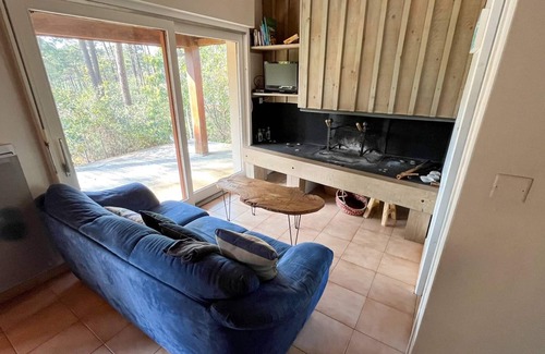 It comprises a large living room with open-plan kitchen, 2 bedrooms with 140 cm double beds and two others for the children with 4 90 cm beds. The chalet has 2 identical bathrooms and a large garden overlooking the magnificent Bombannes forest. The chalet is located in a quiet street in an ideal setting for a family holiday. Deposit to be paid on site, holiday vouchers accepted, Virtual tour available AJP VACANCES HOURTIN.