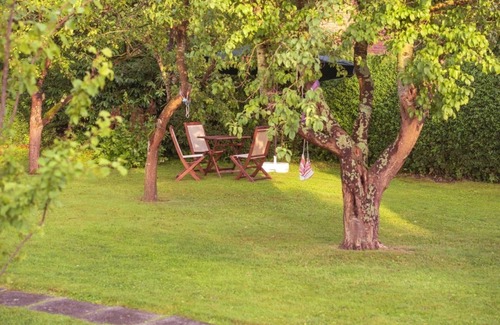 In our small house in a village, quiet location with proximity to the dike you will find 2 apartments. Two parking spaces at the house, a garage, a large garden with two covered seats and old fruit trees are in this beautiful apartment special features that are included in the price. This holiday home with its two apartments provides the little guests with 1 high chair and 1 cot. There are also two bicycles available for use. In a few minutes you can immerse yourself in the World Heritage Site and experience the biodiversity of the salt marshes.