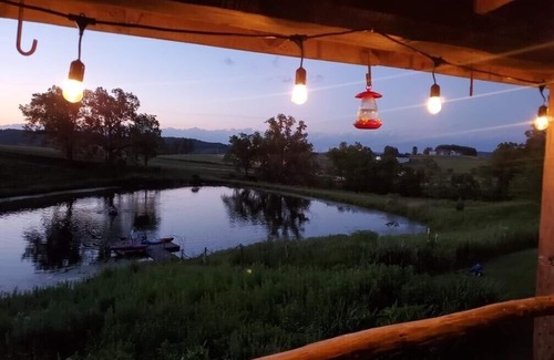 Avid fishers typically like using their own pole to catch and release the bass and bluegill in our stocked ponds, but we do have a few basic adult and child fishing poles available at the cabin (bring earthworms- can find them in town at Casey's Gas Station), supplies for S'mores (we have skewers for roasting the marshmallows (yum), swimsuits, beach towels, floaties, sunscreen and bug spray or Thermacel devices for sitting outdoors are great, a small child/infant air mattress or PackNPlay for sleeping on the main level, a light jacket for sitting out by fire pit in the evening (we have firewood for you near fire pit), dry ice is great for outside large coolers for extra food supplies, flavored wood chips and lump charcoal if planning on using the Big Green Egg smoker yourself, a guitar or musical wind instrument to play around the fire at night (guitars & sax are a favorite of past guests-keep music on lower side at night, please), a camera, dog supplies (food, leash, bed, tie-out/leash.