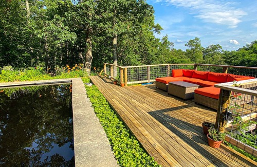 This house is NOT for everyone. It is rustic and a unique experience. The fresh water reflection pool may have tadpoles or frogs due to the fact that there are no chemicals. The surroundings around the house we call 'expert' terrain. It is uneven and requires attention. We have just added Mini Split AC/Heat units in both the falls room and the living room. There are fans in all of the bedrooms.