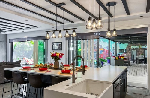 Luxe Legacy Vacations presents 1906 Tampa, a 5-bedroom (10 guests), modern industrial style home crafted as a private oasis where massive glass walls and an epic mural immerse you in the charm and history of early 1900’s Tampa. Fill the spaces with music, and find your spot by the pool – this might just be heaven!