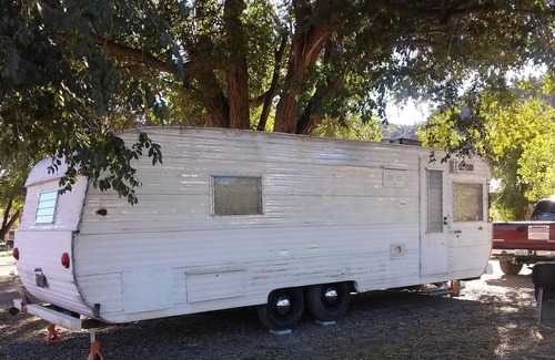 1959 Traveleze Rolling Cabin with Refrigerator, Microwave, And Coffee Pot. Kitchen, Bedroom, Bathroom and Flat screen with Blue Ray. Come and relax after a long drive without the hassle of setting up a camp site. Reserve and we will place RV in Site, it will be ready when you show up. San Miguel River with park near by. ATV playground with endless trails across from park. BLM ad hunting land surround park. Enjoy the Unaweep Canyon for a hundred miles.