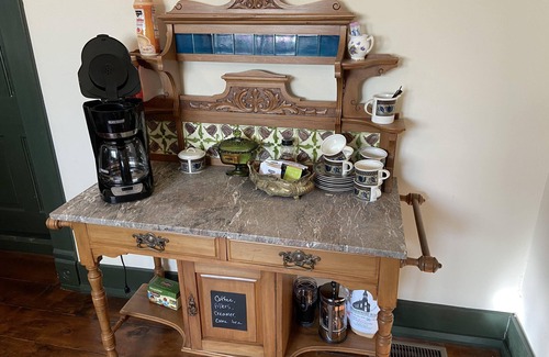 We provide fresh local coffee, assorted tea, creamer, and organic eggs fresh from our hobby farm. Don’t forget basic cooking supplies for all your cooking needs. Cold filtered water in the refrigerator and snacks.