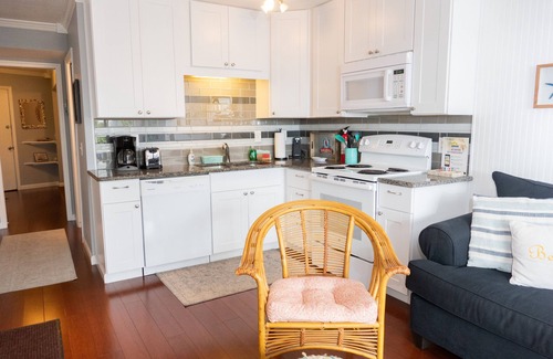Although we don't recommend cooking on vacation, this kitchen is equipped with a full size stove and has plenty of counter space. Basic cookware, silverware, dishes, and glassware is provided.