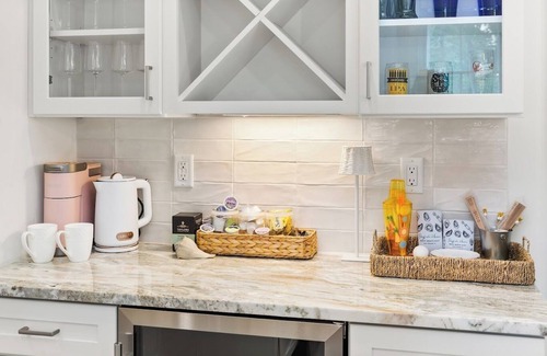 Upgraded Kitchen: A fully stocked kitchen awaits you with brand-new appliances, granite countertops, and all the essentials for cooking a family meal—from a blender and baking sheets to coffee, tea, and spices.
