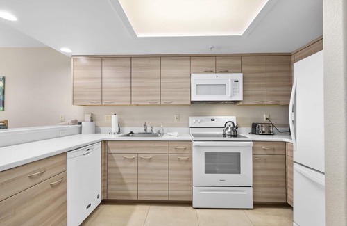 This two-story condo overlooks the North Bluff pool and the ocean beyond. On the first level you will find a half-bathroom, fully stocked kitchen to include oven range and stove top, full sized microwave, refrigerator and dishwasher. Kitchen high-top counter offers bar top seating in addition to the dining room table and chairs. In the tastefully decorated living room you have a full-sized couch, recliner and loveseat with a large tv and gas fireplace. The slider opens to a private balcony that overlooks the pool below and the ocean beyond. There is a modest sized electric bbq for grilling. Upstairs you have a stacking washer and dryer and full bathroom in the hall. Both bedrooms offer a comfortable bed and ample storage for your personal belongings. The master includes a tv, full bath and a second private balcony with views of the pool and ocean below. Newly remodeled this light and bright condo also offers you easy access to the elevator making your travel experience even easier.