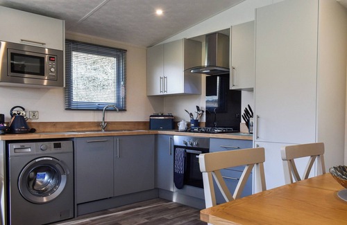 Stepping inside you have a lovingly furnished open plan living area, complete with lots of thoughtful extras, with glass double doors opening onto the decking. There is a twin bedroom as well as the master double bedroom, both beautifully presented. The lodge benefits from two bathrooms, the main bathroom with a shower over the bath as well as an en-suite shower for the master double bedroom.