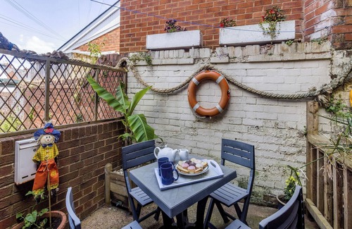 Bathroom: Bath With Shower Over, Toilet. Gas central heating, elecricity, bed linen, towels and Wi-Fi included. Enclosed courtyard with garden furniture. Private parking for 1 car. No smoking.. 100 yards from the beach. In an excellent seafront location, 100 yards from Exmouth sandy beach with sea views, this ground floor apartment is well equipped for 4. A perfect base close to the marina and to enjoy the seaside resort of Exmouth, or the East Devon Heritage Coast. There is walking, golf, fishing and water activities on offer in the area. Places to visit include A la Ronde (NT), Budleigh Salterton, Crealy Adventure Park and Exeter, The Jurassic Coast, South West Coastal Path, Sidmouth, Branscombe, Beer and Lyme Regis. Or why not take the ferry over the River Exe and enjoy the Dawlish Warren Nature Reserve or one of the riverside bars. There is also a popular seafood restaurant nearby. Shop and pub with food 50 yards, beach 100 yards.