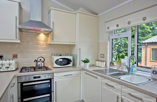 Forest Glade Lodge is a cosy yet spacious two bedroom lodge with its own private veranda. The master bedroom consists of a kingsize bed and has its own en-suite, as well as a twin bedroom and a separate bathroom. The well-equipped kitchen leads on to the dining area, along with a light and spacious living area with 55" TV. It is a perfect place to stay any time of year and a great option for couples or families. Beach 6½ miles. Shops 7½ miles, pub and restaurant ½ mile.