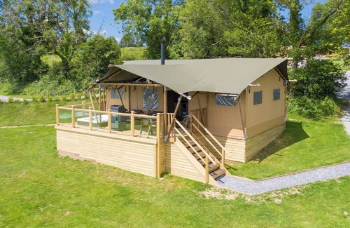 Exclusive one storey safari tent perfect for a peaceful breakaway with family or friends. Ground floor: One four poster double. Shower. Spacious open-plan living area with galley kitchen and wood burner (with supplementary radiators). Flatscreen TV. Large verandah, garden furniture, BBQ and sunken outdoor hot tub. No pets.. Celtic Escapes is part of our exclusive Bouja Luxury Boutique Breaks Collection. Nestled peacefully amidst the beautiful rolling countryside in Pembrokeshire this stylish accommodation provides the ultimate retreat for romantic escapes, outdoor adventures or just kicking back and enjoying relaxation time. Located a short walk from the stylish market town of Narberth, each accommodation has been carefully chosen with you in mind, creating a chic blend of space, style and contemporary comfort and boasting spacious living areas and well equipped kitchens, whilst hot tubs and woodburning stoves provide the ultimate in relaxation. Unwind on your own decking enjoying the tranquility of birdsong, sit back and soak up the peace and quiet in your own hot tub and look upwards in the evening at some of the most clear starry night skies in the UK. . Celtic Escapes is part of our exclusive Bouja Luxury Boutique Breaks Collection. Nestled peacefully amidst the beautiful rolling countryside in Pembrokeshire this stylish accommodation provides the ultimate retreat for romantic escapes, outdoor adventures or just kicking back and enjoying relaxation time. Located a short walk from the stylish market town of Narberth, each accommodation has been carefully chosen with you in mind, creating a chic blend of space, style and contemporary comfort and boasting spacious living areas and well equipped kitchens, whilst hot tubs and woodburning stoves provide the ultimate in relaxation. Unwind on your own decking enjoying the tranquility of birdsong, sit back and soak up the peace and quiet in your own hot tub and look upwards in the evening at some of the most clear starry night skies in the UK. . Outdoor swimming pool