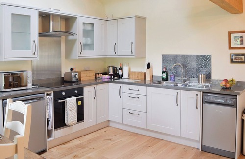 Kitchen area: Electric Oven, Electric Hob, Microwave, Fridge, Freezer, Dishwasher. Oil central heating (underfloor in hallway and bathroom), electricity, bed linen, towels and Wi-Fi included. Initial logs for wood burner included. Travel cot and highchair.. Enclosed courtyard with patio, garden furniture and BBQ. 20-acre grounds (shared with owner). Bike store. Private parking for 2 cars. No smoking. Please note: There is a covered well in the grounds, 8m away.. This old, stone barn, surrounded by 20 acres of unspoilt pasture land, with the owner’s living next door, dates back to the mid 1800s, and has been lovingly converted into a holiday home, combining charm and rustic features alongside all the contemporary comforts and amenities. Entering at ground floor level, there is a spacious hallway with underfloor heating, and plenty of room for coats and muddy boots. There are two beautifully presented bedrooms, both of which have flatscreen TVs, as well as a spacious wet room. An oak and glass staircase leads up to the first floor where you will find the light and airy open plan living space. At one end of the room is a well-equipped kitchen and dining area, and at the other end is a welcoming living area with plenty of comfy seating and a cosy wood burner, perfect for those cooler evenings. Outside there is an enclosed patio with table, chairs and barbecue - perfect for al fresco dining.