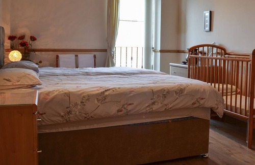 Bathroom: With bath, shower attachment, toilet and tiled floor.. The Hayloft is a beautiful first floor apartment, sympathetically converted from a former 17th century stable block, and is perfect for that memorable stay. Couples, young families and friends alike are sure to enjoy their stay here.