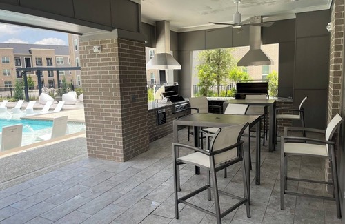 Enjoy resort-style amenities including a sparkling pool, fully-equipped fitness center, entertaining game room, pool table, and a BBQ area perfect for evening cookouts. Inside, you’ll find modern comforts like air conditioning, in-unit washer/dryer, a relaxing bathtub, and essential touches like a hair dryer for added ease.