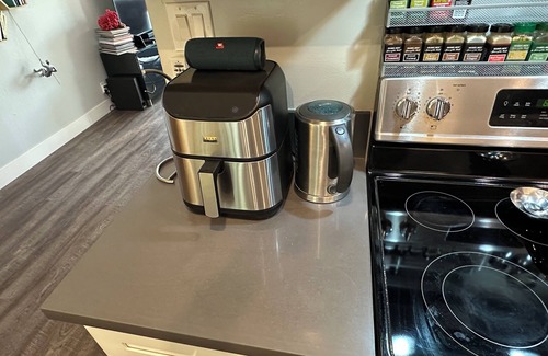 Inside, you'll find a comfortable queen bed and a cozy twin beds,complemented by designer furniture, including a luxurious Stressless sofa and chair set. Modern conveniences include high-speed WiFi, heating, a washer and dryer (in-unit), and an iron—everything you need for a comfortable extended stay.