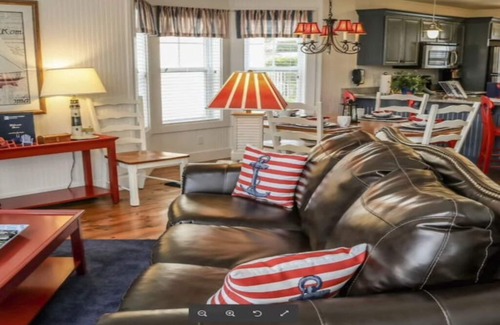 Our spacious, 1200 square foot, two-bedroom/two-bathroom cottages are the perfect New England inspired getaway. Styled after the cottages of Cape Cod, each two-bedroom unit comes equipped with a beautiful deck area, comfy pillow-top beds, and a cozy fireplace/living room setting that creates the ultimate relaxing atmosphere. You’ll find comfortable sleeping arrangements with 2 King beds and 1 Queen Sleeper sofa. These individual, standalone units are well-appointed with all the amenities you need to make Stormy Point Village your home away from home. Our two-bedroom cottages also include a private spa tub for extra relaxation, making Stormy Point Village an ideal vacation home away from home. Included in each cottage are washer and dryer setups as well as a fully-equipped kitchen with stove-top. If you are looking for a warm and inviting private retreat, look no further than the cottages at Stormy Point Village!