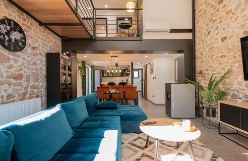 This luxurious vacation home, located in the green hinterland of the Dalmatian coast, combines tradition with contemporary comfort. Enjoy a unique vacation with the whole family at this beautiful retreat. Start your vacation days by preparing a sumptuous breakfast while you make plans for exploring the attractions in your vacation region. The modern amenities, colorful accents and decorative wall elements give the house a very special atmosphere. The open-plan design encourages family get-togethers. Relax in the cozy seating area, play a game on the games console and dine together at the beautiful dining table. Outside, the well-kept outdoor area with pool, comfortable sun loungers and play equipment for the children will entice you.