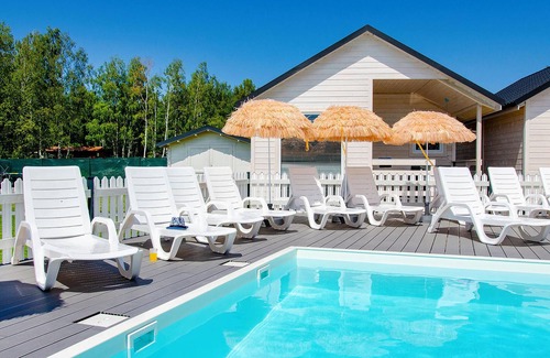 In the vacation resort of Bobolin, part of the spa town of Dabki, you will find this bright house that offers you simple comfort. Arrive here with your family and feel at home from day one. From the living room you can access the fantastic pool area, where you can laze around all day. The little ones can romp around in the playground. In the evening, after your activities and excursions, there's nothing better than making yourself comfortable on the terrace.