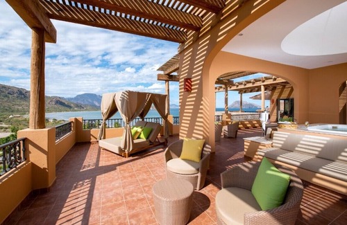 Deluxe Two-Bedroom Oceanfront Penthouse. For those out there expecting eventually to reach Heaven…why wait?! This spacious (2696 sq. ft.) recently-built Unit with Premium Suite conveniences at your fingertips should be an essential consideration on your search for a special destination, one that achieves a blend of luxury, adventure, and tranquility. Along with portrayal of the Resort’s overall uniqueness and exclusivity, further details of this most amazing unit are to be noted as well: on-site Medical facility and Doctor services; huge tiled children’s pool, with interactive fountains; four other refreshing pools of varying sizes, along with a large hot-tub area, are situated about,with dedicated adults-only hot tub and pool sections also set aside; a grocery & souvenir store as well as a sports shop are at hand; for those lover of the outdoors, extensive weaving desert hiking paths extend throughout the Resort’s 4500-acre desert expanse, and a secluded beachfront bar and an aquatic service shack are situated along the private beachfront shores of Danzante Bay; whether participating or simply touring its grounds, a stunning 18-hole TPC Golf Course is a must-see; for those Adventurous types - fishing, diving, snorkeling and whale-watching boat trips visiting the spectacular offshore Islands and waters of the Sea of Cortez are readily available, many departing from and returning to the Resort beachfront itself; arrangements for road bikes and automobile rentals can easily be made in the lobby; transportation to and from the Loreto Airport, as well as for regularly scheduled Resort Van services to the quaint town of Loreto and other nearby areas are easily obtained; an expansive and comprehensive Fitness Facility with magnificent floor-to-ceiling desert views enhance one's leisurely exercise periods; a magnificent Spa complex is on location to soothe and satisfy; four pleasurable and distinctive fine-dining spots are guaranteed to appeal to any appetite; and, most definitely to be taken in are the nightly staged events and programs especially designed to enhance an end to the day. Lastly, the endless parade of sunsets and sunrises, with dreamy rotating displays of stars spaced all in between, contribute their exquisite dividends toward a truly unmatched and most singular Vacation experience.
