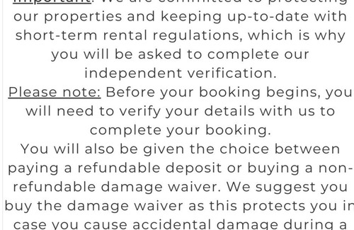 **Important:** We are committed to protecting our properties and keeping up-to-date with short-term rental regulations, which is why you will be asked to complete our independent verification.