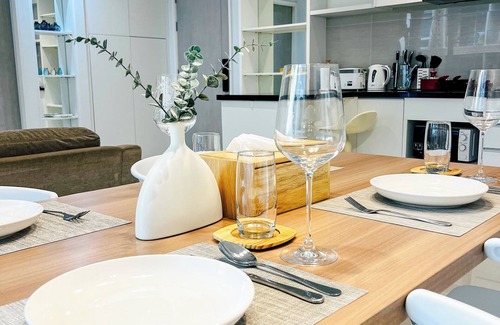 Our fully equipped kitchen has everything you need to prepare meals during your stay, including a refrigerator, induction cooktop, microwave, Nespresso coffee machine, kettle, toaster, rice cooker, blender, and kitchenware. A dining area is also available for shared meals.
