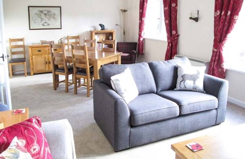 Amenities: Electric storage heaters with electric fire. Electric oven and hob, microwave, fridge/freezer, dishwasher. TV with Freeview, DVD player, CD Player, WiFi, a selection of books, games and DVDs. Fuel and power inc. in rent. The washing machine is in the garage. Bed linen and towels inc. in rent. Travel cot available on request. Off-road parking for 2 cars. Front lawned garden and rear garden with lawn and furniture*. One well-behaved pet welcome. Sorry, no smoking. Shop 0.2 miles, pub 0.1 mile. Note: Check-in is from 5pm, check-out by 10am