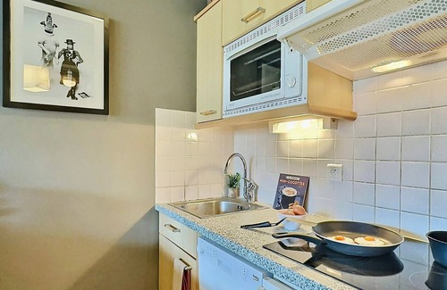 Equiped with a hobs, an oven, a dishwasher and a fridge.
