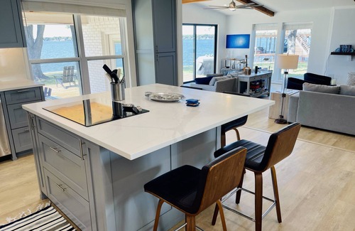 After sundown, enjoy a fire, the hot tub, board games, poker, chess, pool or other games or watch the 75" high definition tv in the massive great room. You can also watch the water from a double chaise lounge in the great room that has a full wall of sliding glass doors that open to brand new decking that are just steps from the water. You can also work or relax using the 5G wifi network.