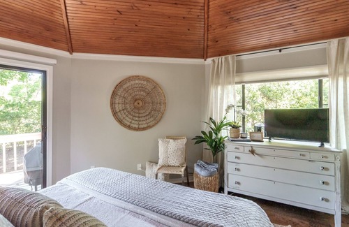 The beach is just a quick 5-minute stroll from the house. Beach gear (wagon and chairs) are provided. Just remember to bring your flip flops! Whether seeking a serene retreat or proximity to nearby shops and restaurants, this villa is the perfect haven for small families or couples in search of accommodations that are private, have great beach access and are not located in a high rise condo community. Some folks say this reminds them of a tree house; come check it out and see if you agree!