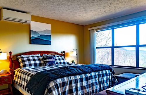 Pisgah #1 is a 2bed/2 bath 2-story 1200 square feet townhouse that includes: keyless entry, high speed WIFI, smart TV's in every room, stocked kitchen, king bed, two twin beds, fireplace, deck with seating area, gas grill, spilt heating/cooling units, private parking, and some of the best unobstructed mountain views in North Carolina!