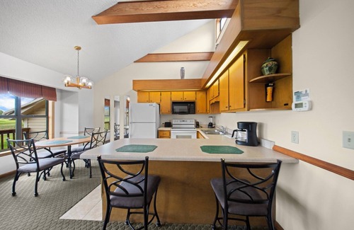 Your stay includes a spacious, two-bedroom condo with a private downstairs entrance, offering comfort and convenience after a day of outdoor fun. The main and guest bedrooms each feature two full-size beds, and a sleeper sofa in the living area provides extra space for guests. A fully equipped kitchen makes it easy to prepare your favorite meals, while the open dining area and porch create the perfect setting to gather, share stories, and enjoy the peaceful sounds of the outdoors.